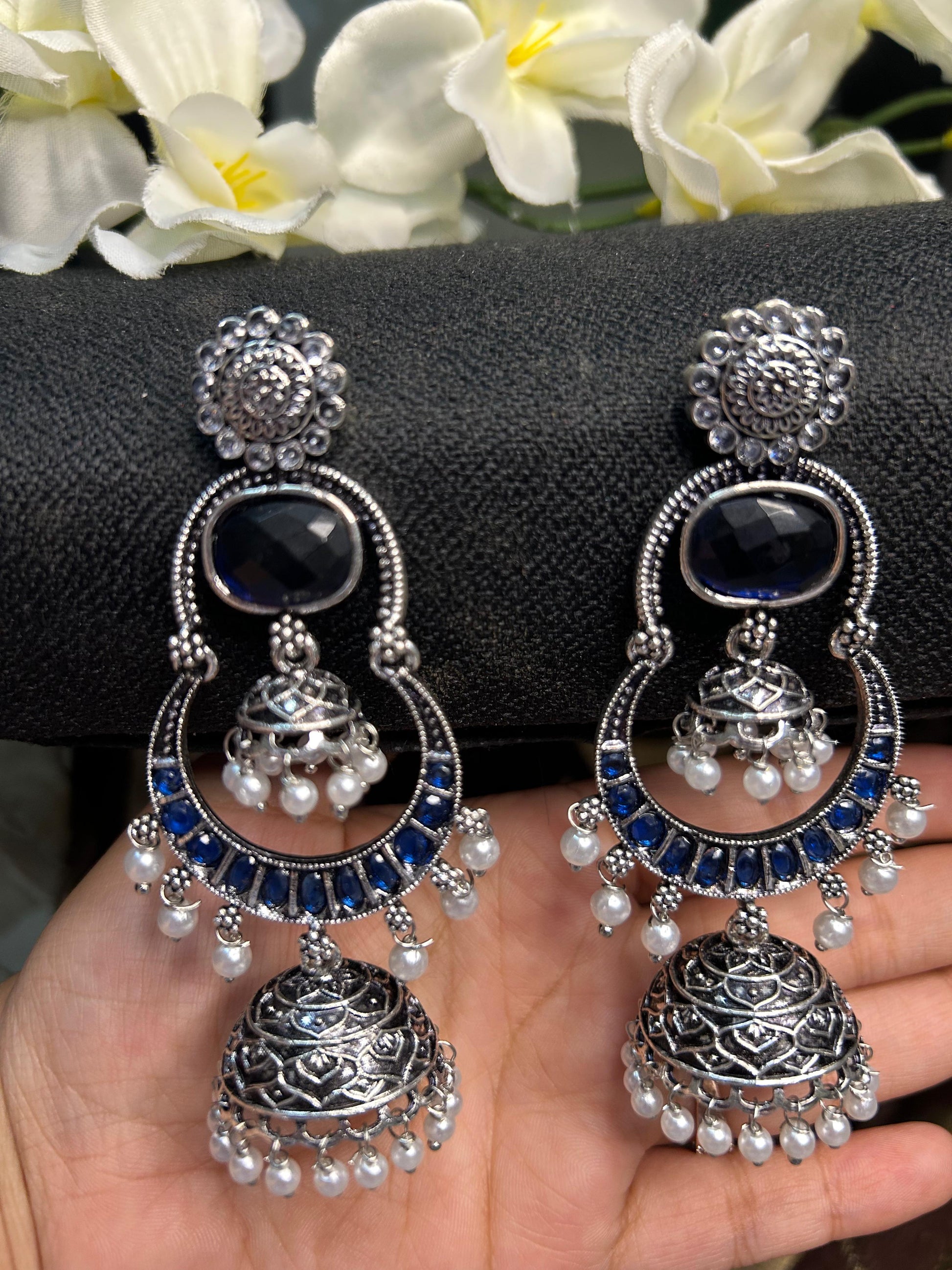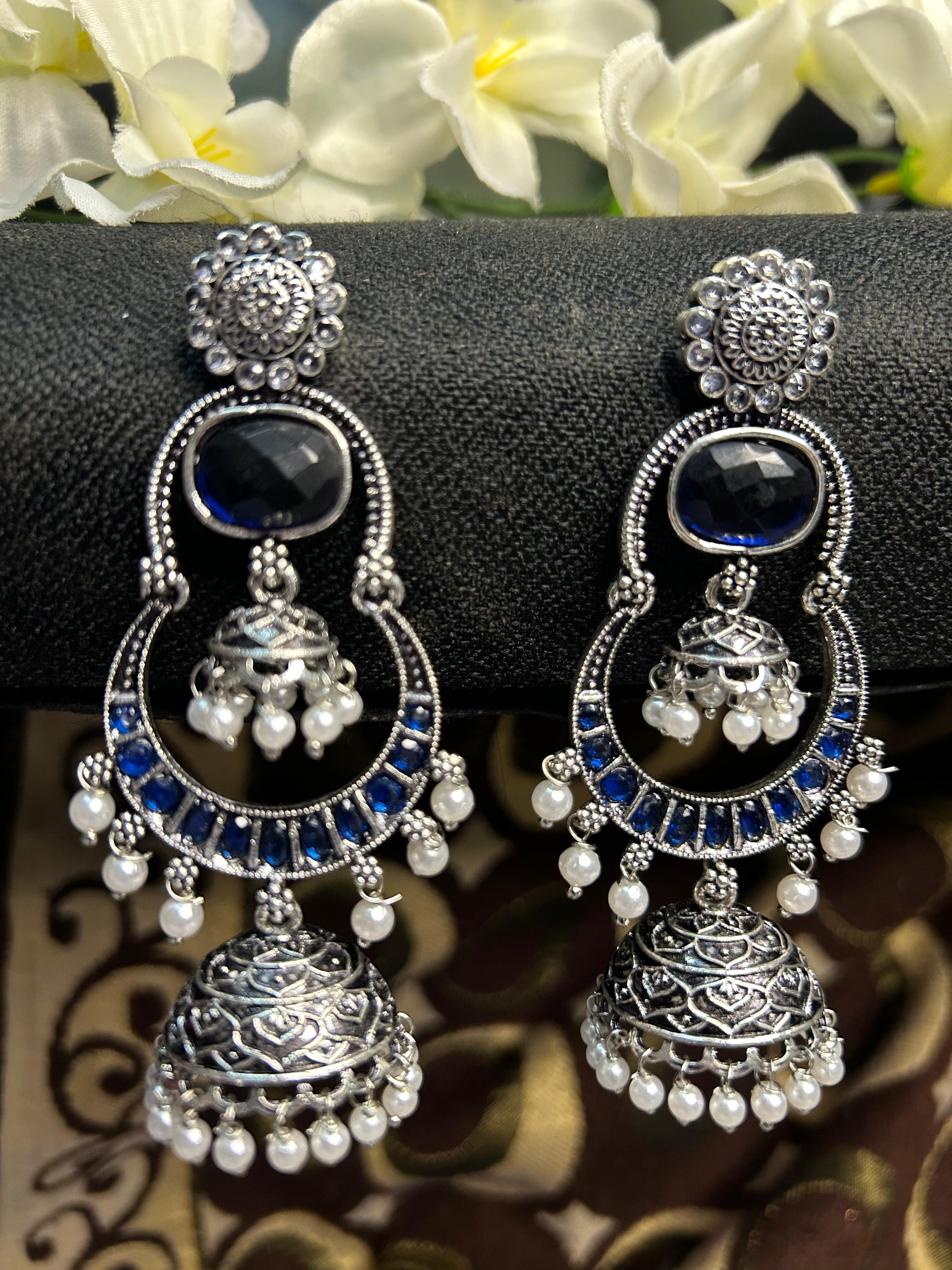 Dark Blue Silver Double Jhumka