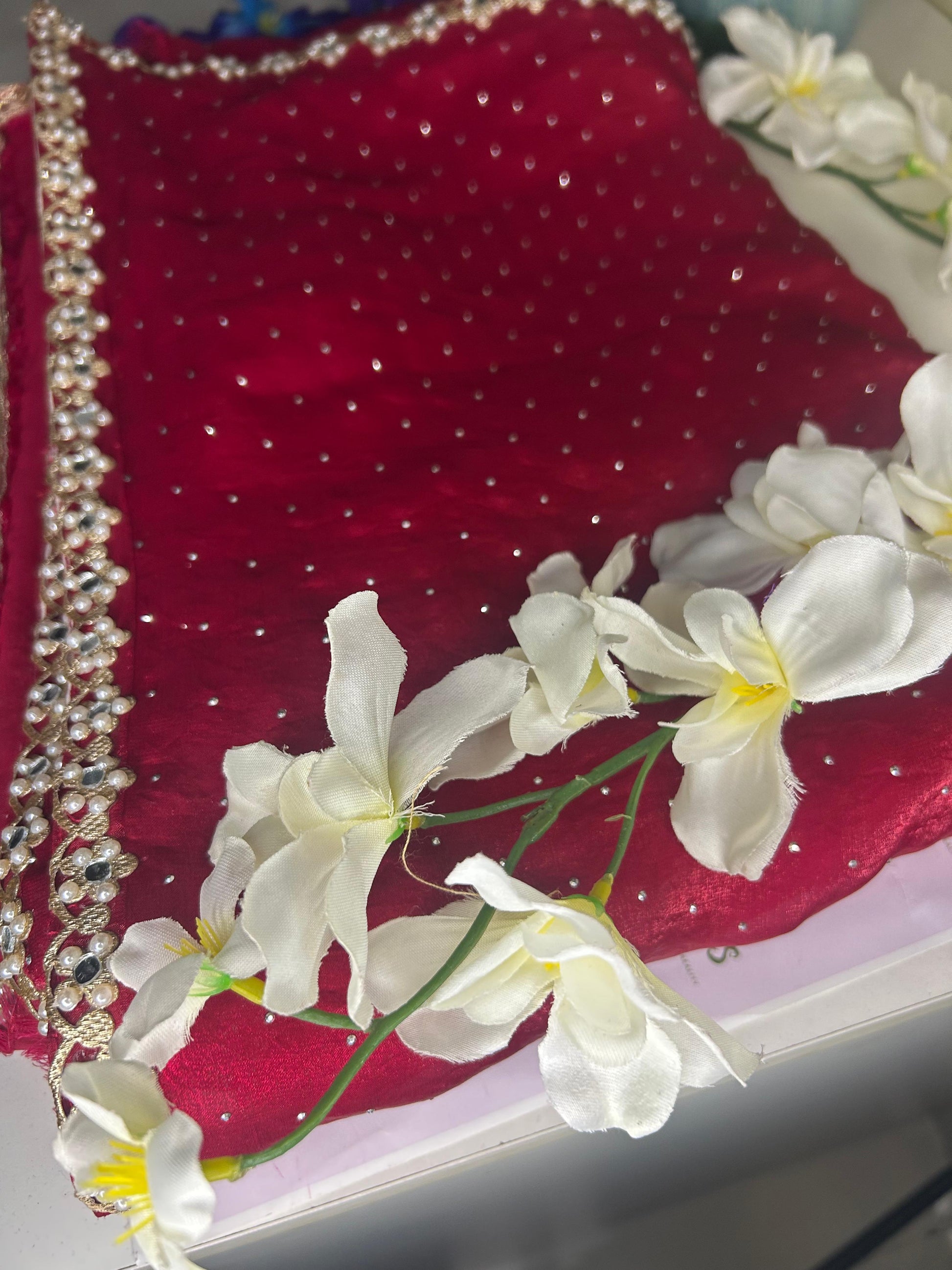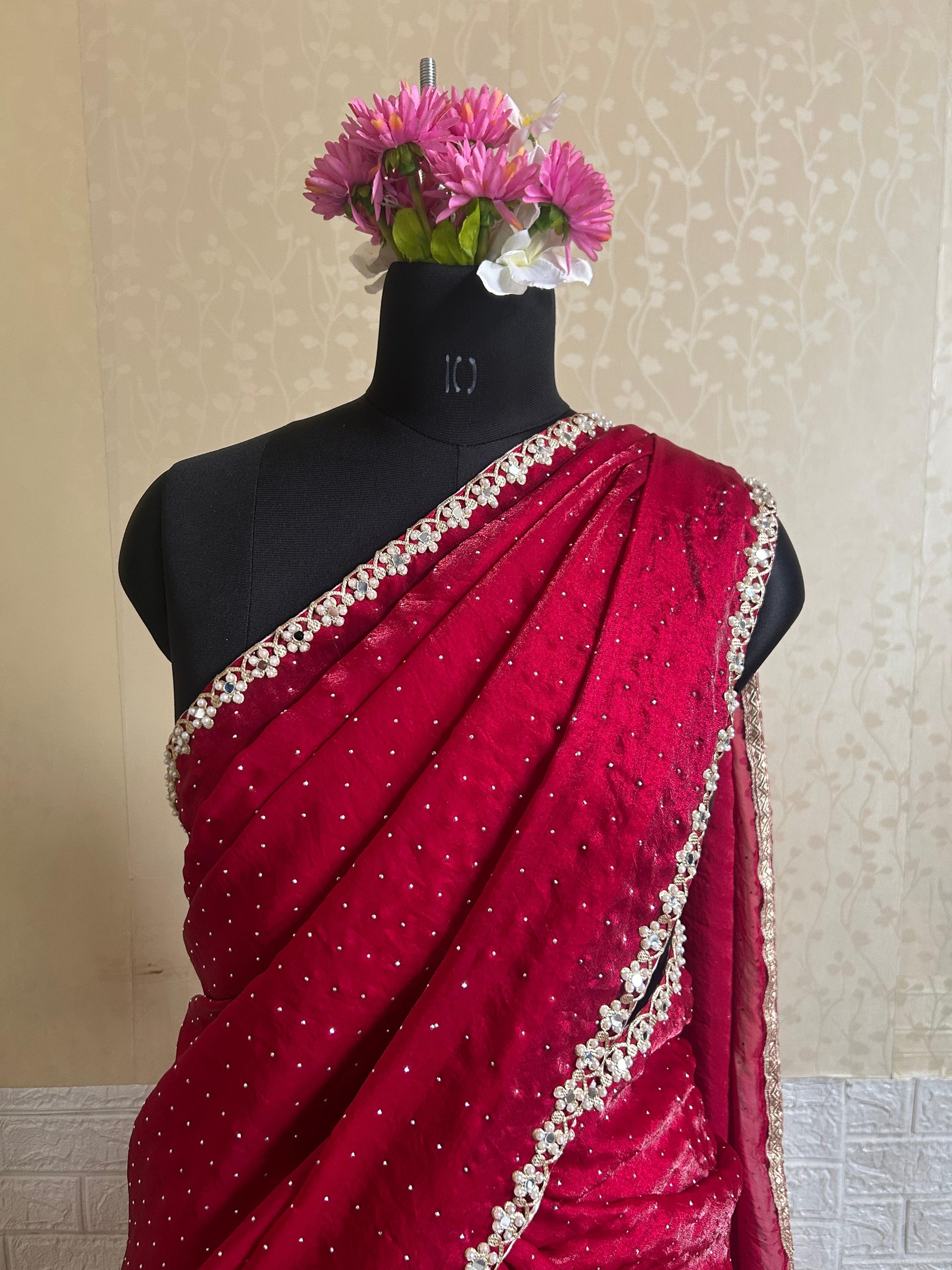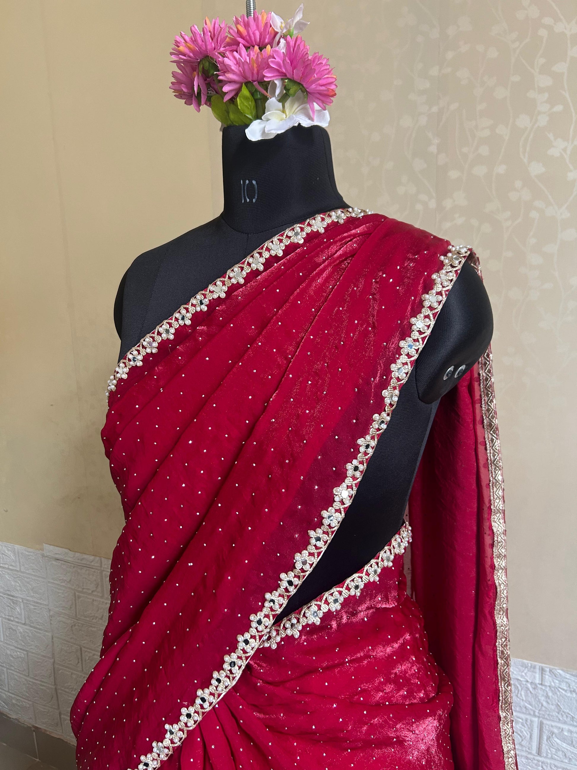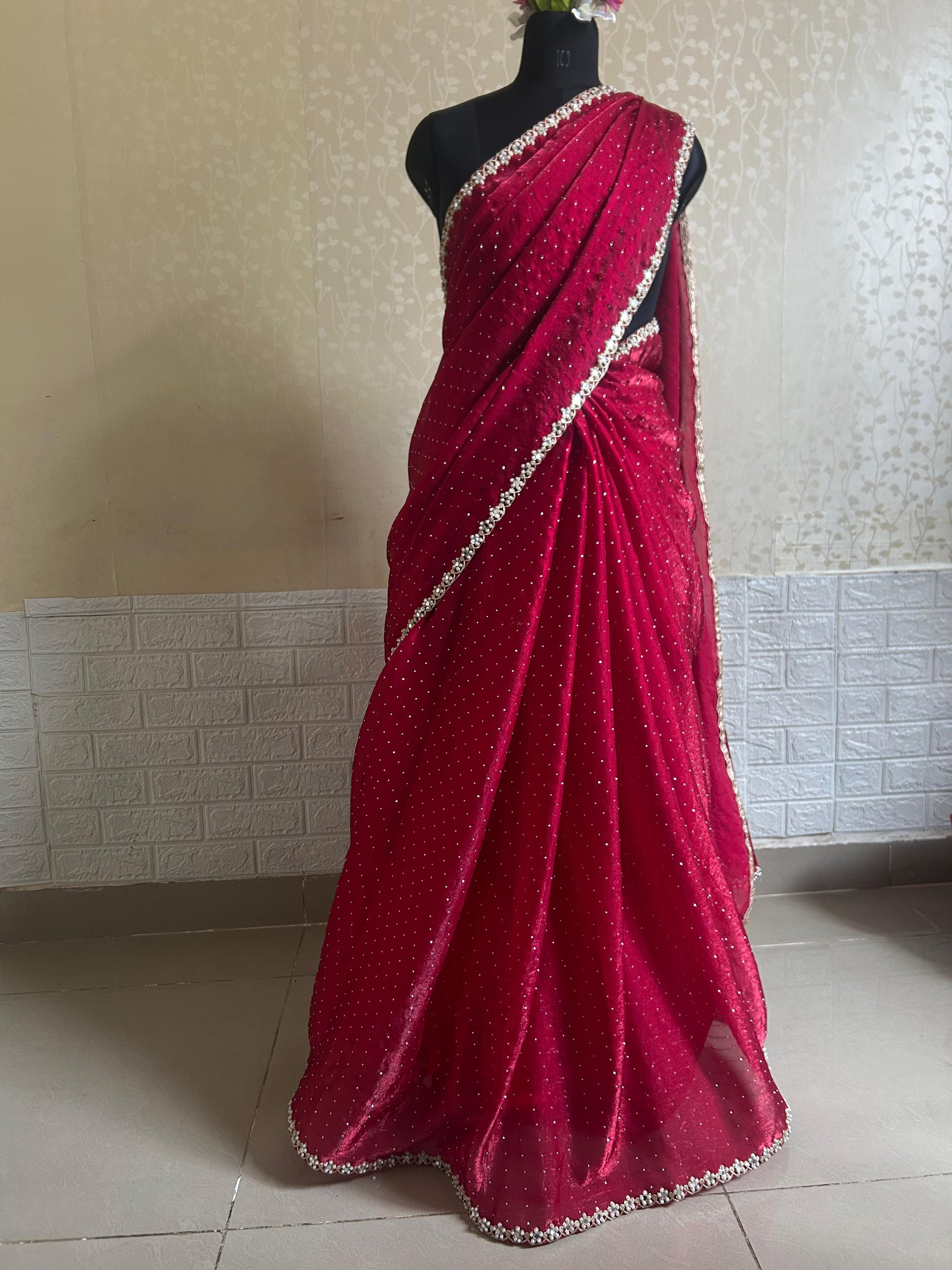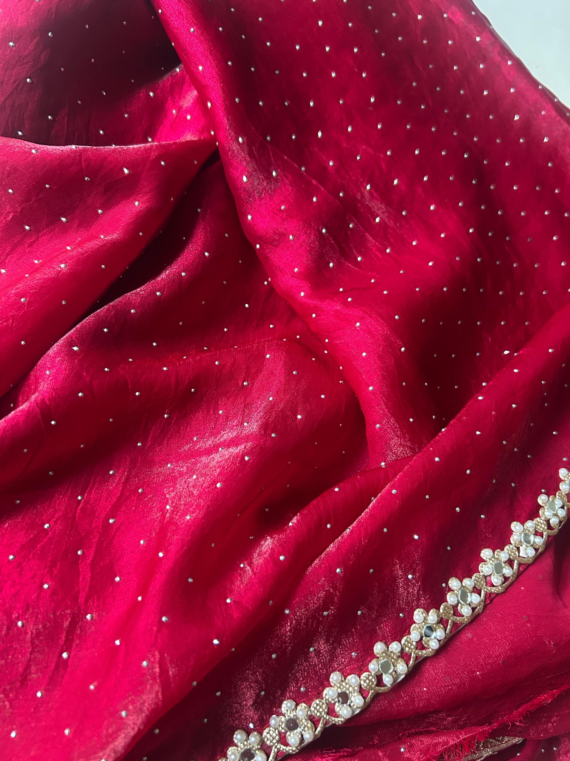 Jhilmil Sitaare in a red magenta shade offers a vibrant and elegant color perfect for adding a bold yet sophisticated touch to your collection. This shade combines the warmth of red with the playful energy of magenta, ideal for statement pieces that stand out. Designed with an expert eye for color harmony, Jhilmil Sitaare enhances any ensemble with its rich, luminous tone. Suitable for both formal and festive occasions, it promises to bring a refined vibrancy to your wardrobe.