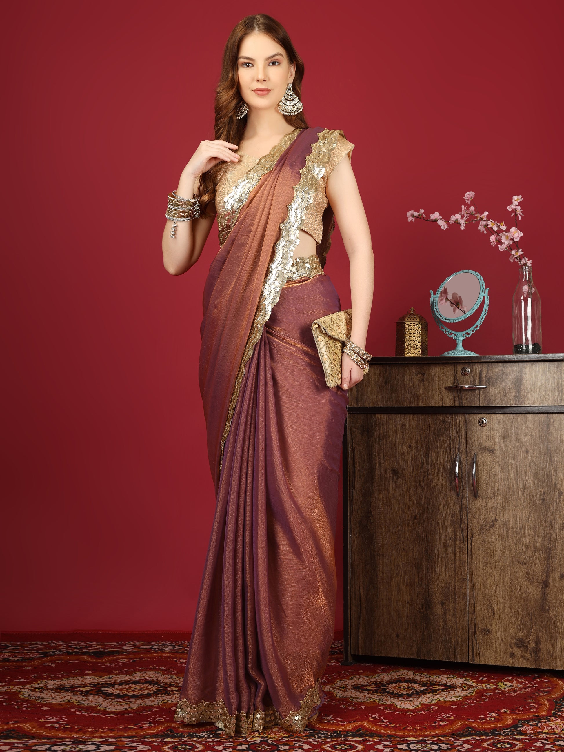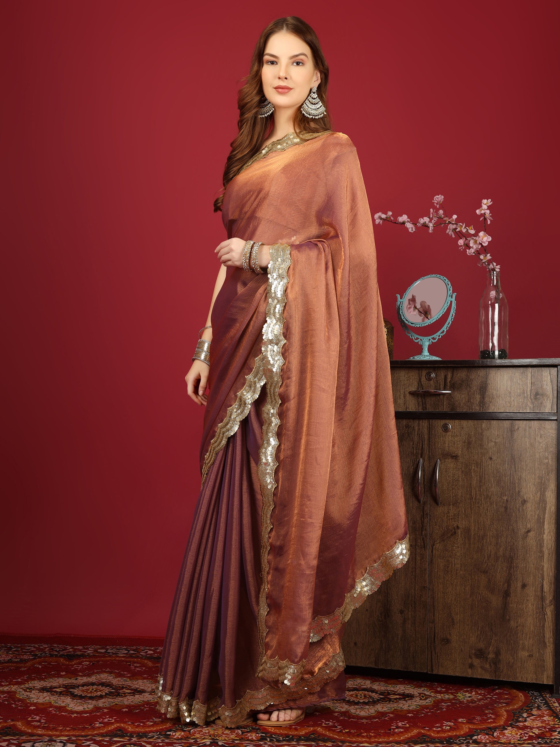 A vision of copper warmth Jimmy Choo fabric and golden shimmer, glowing with every step you take. Adorned with delicate scallop lace, Ruhani Rang is crafted to embrace your elegance at weddings, festivities, and cherished moments. 🌸Each piece is handcrafted with love and can be customized in color, blouse design, and detailing to reflect your own story of grace. 💫