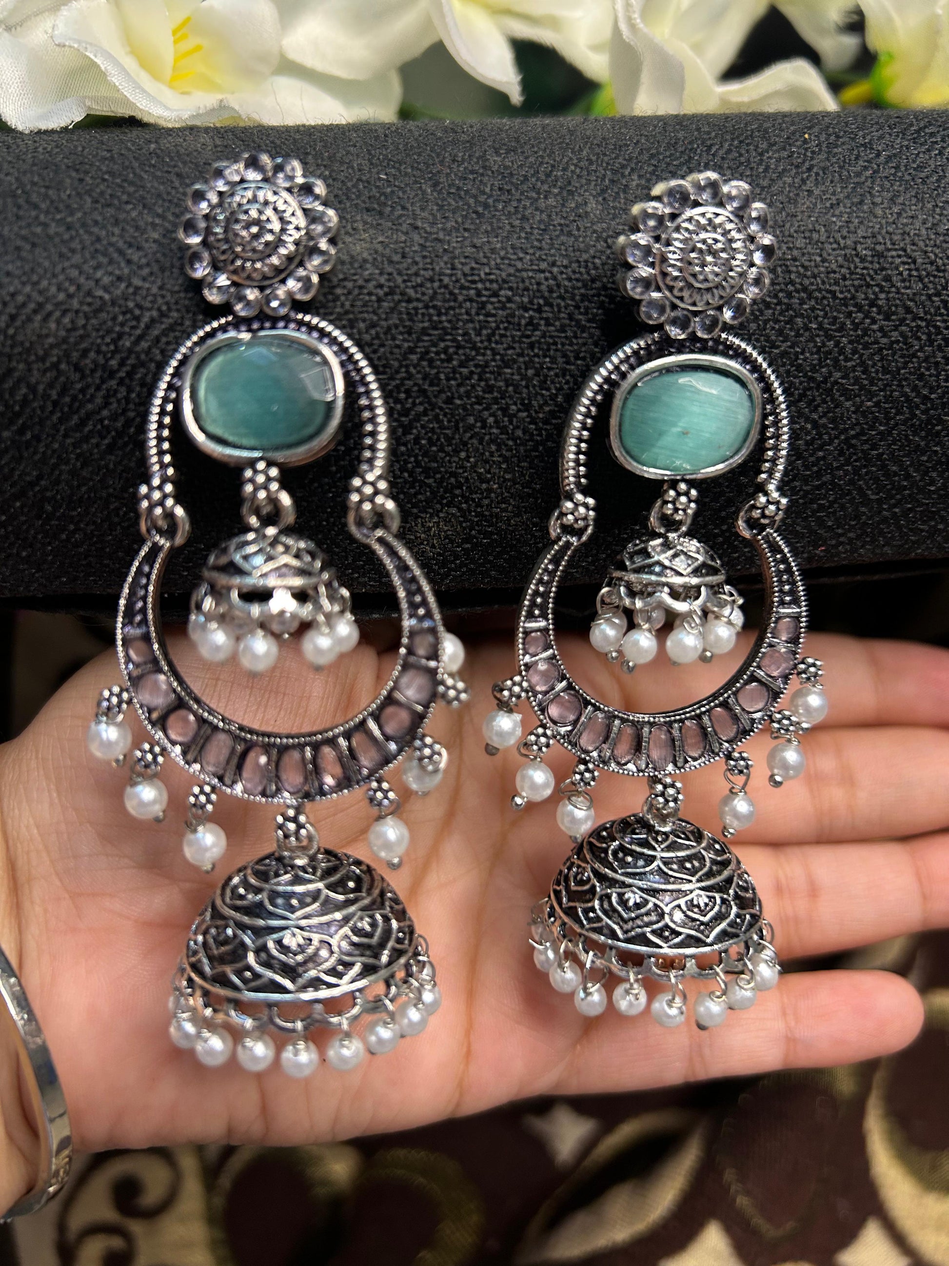 Teal Silver Double Jhumka